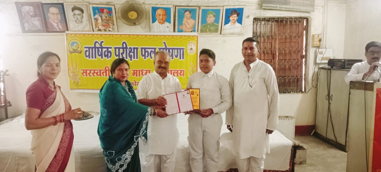 कोरबा। सरस्वती उच्चतर माध्यमिक विद्यालय, कोरबा में मुख्य अतिथि शंकरलाल टमकोरिया, कोषाध्यक्ष, सरस्वती शिक्षा समिति, कोरबा के मुख्य आतिथ्य में स्थानीय परीक्षा के परीक्षाफल घोषणा एवं पुरस्कार वितरण का कार्यक्रम उल्लासमय वातावरण में संपन्न हुआ। विद्यालय आगमन पर मुख्य अतिथि का रोली तिलक से स्वागत किया गया। उन्होंने विद्यालय में माँ सरस्वती का पूजन-अर्जन किया।